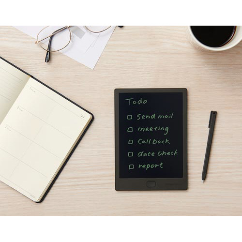 何度も書いてすぐに消せるA6手帳サイズの電子メモパッド。ボダン一つで画面が消去できて何度でも繰り返し使える!背面にはマグネットと14cmまで測れる便利な定規付き。