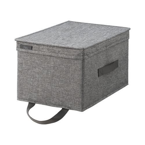 ハーフタイプ。棚上から引き出しやすい取っ手付き。フタ裏に防虫剤を入れられるポケット付き。しっかりした芯材入りで型崩れしにくい。