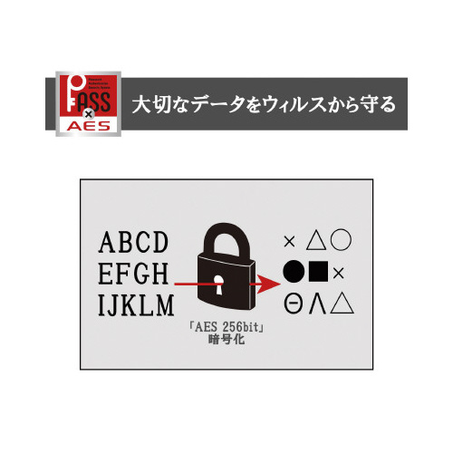 ※セキュリティ機能/PASS[パスワード自動認証機能付セキュリティソフト]orPASS×AES[パスワード自動認証機能付暗号化セキュリティソフト]