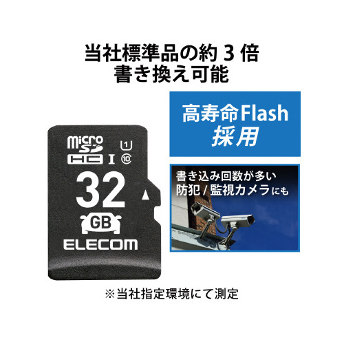 ドライブレコーダーに最適!車内でも安心して使用できる高耐久モデルのmicroSDHCメモリカード。※他に、防犯/監視カメラ,ネットワークカメラなど書込み回数が多い用途にも適しています。