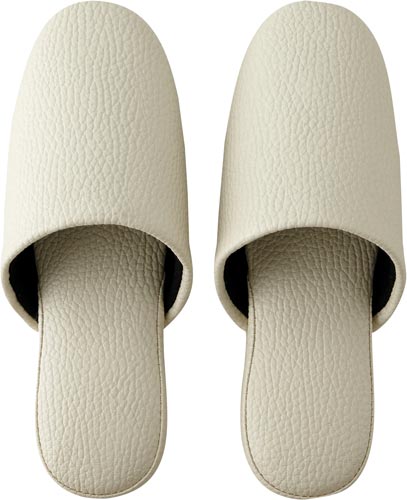 抗菌・防汚・耐塩素漂白の三機能を兼ね備えたビニール生地を採用。多数の方が履かれるシーンでも大活躍。高級感のあるレザー調の型押しで、落ち着いたカラーも魅力です。底面かかと部分には滑り止め付き。