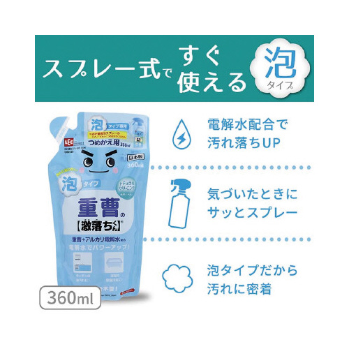 重曹配合の無色無臭のクリーナー。汚れに貼り付く泡タイプなので、レンジフードや壁等の傾斜面にも便利。元々自然界にあるものや食べ物に含まれる天然成分を使った安心で手軽なおそうじ方法です。