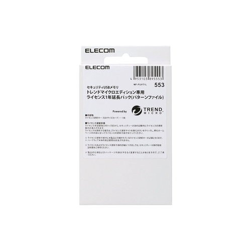 トレンドマイクロ版ウイルス対策機能付きセキュリティUSBメモリのウイルスパターンファイル更新ライセンス期間1年延長パック。