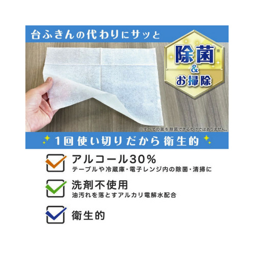 2度拭きも不要で、臭いの元となる汚れや雑菌を取り除くので、除菌・消臭効果があります。冷蔵庫の内外、レンジ周り、電子レンジ等の調理家電、換気扇、調理台、食卓などのお掃除に。界面活性剤不使用