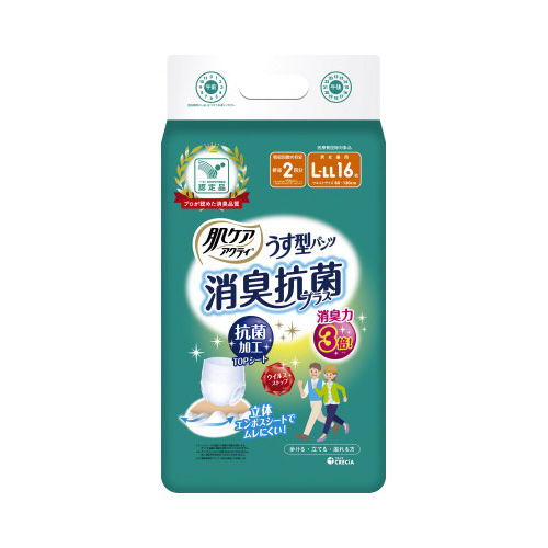 抗菌効果のある「超強力消臭シート」が細菌の増殖を抑制し、尿・汗・便のニオイすっきり!ウイルスストップ機能で、シート上のウイルスの数を減少。お腹まわりゆったり&背中側ぴったりフィットで、はきごこち快適!