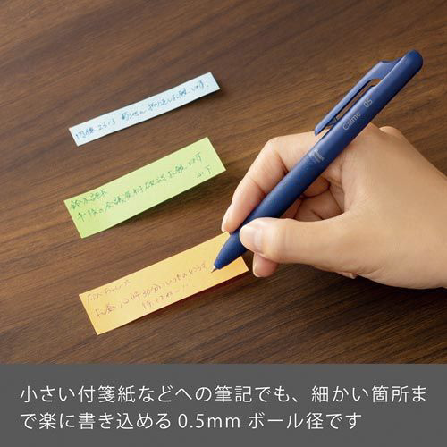 心地よく静かなノック感で使う人や環境に調和する、なめらか油性ボールペン。カメラの持ち手にも使われる革調のロンググリップを採用しており、筆記時の安定感も抜群です。