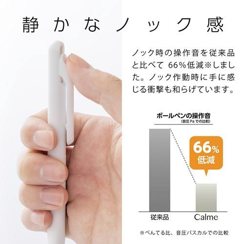 心地よく静かなノック感で使う人や環境に調和する、なめらか油性ボールペン。カメラの持ち手にも使われる革調のロンググリップを採用しており、筆記時の安定感も抜群です。