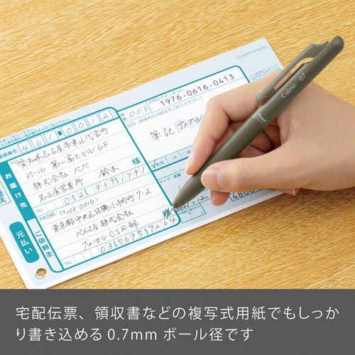 心地よく静かなノック感で使う人や環境に調和する、なめらか油性ボールペン。カメラの持ち手にも使われる革調のロンググリップを採用しており、筆記時の安定感も抜群です。