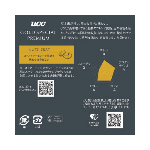 長年培ってきたUCCのブレンド・焙煎技術で、新たなコーヒーの楽しみ方をご提案。コク・苦み・酸味だけでは語りきれない特別な味わいを実現しました。ローストアーモンドや黒糖を思わせる香ばしさ。