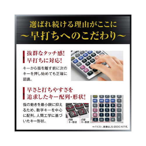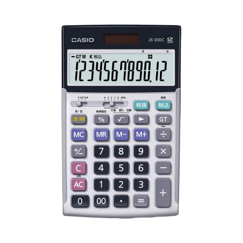 日数&時間計算機能つき本格実務電卓。ジャストサイズ、12桁表示、安心の5年保証モデル。優れた早打ち対応設計、操作性、視認性など、ひとクラス上の性能が業務を強力にサポート。
