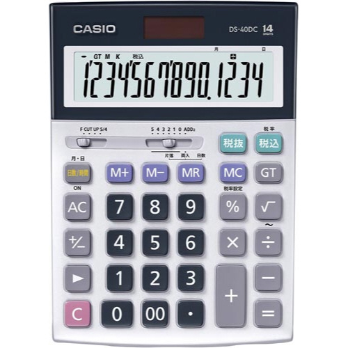 日数&時間計算機能つき本格実務電卓。デスクサイズ、14桁表示、安心の5年保証モデル。優れた早打ち対応設計、操作性、視認性など、ひとクラス上の性能が業務を強力にサポート。
