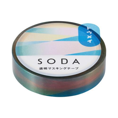 重ねて貼って楽しむことができる透明なマスキングテープSODA。透明なので、下地の素材を活かしつつ、デコレーションを楽しむことができます。弱粘着PET素材なので何度も貼り直しが可能