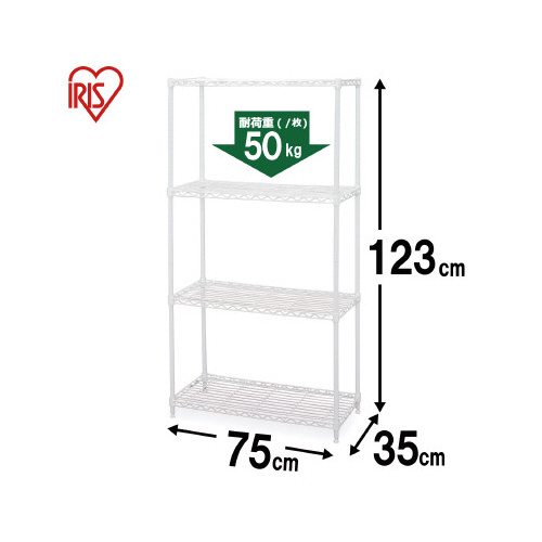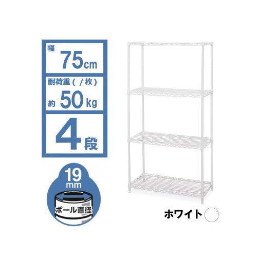 【4段】【幅75×奥行35×高さ123cm】【ポール直径19mm】【ネジ・クギ等不要の簡単組み立て】設置場所の雰囲気に合わせて選べるカラーメタルラックです。すっきり配置できるアジャスター仕様です。