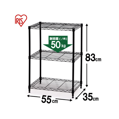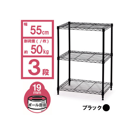 【3段】【幅55×奥行35×高さ80cm】【ポール直径19mm】【ネジ・クギ等不要の簡単組み立て】設置場所の雰囲気に合わせて選べるカラーメタルラックです。すっきり配置できるアジャスター仕様です。