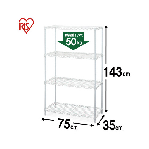 【4段】【幅75×奥行35×高さ143cm】【ポール直径19mm】【ネジ・クギ等不要の簡単組み立て】設置場所の雰囲気に合わせて選べるカラーメタルラックです。すっきり配置できるアジャスター仕様です。