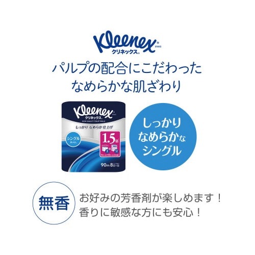 品質はそのままで8ロールで12ロール分の長さ。パルプ配合にこだわったしっかりなめらか仕上げ。消臭機能付きの無香料タイプ。