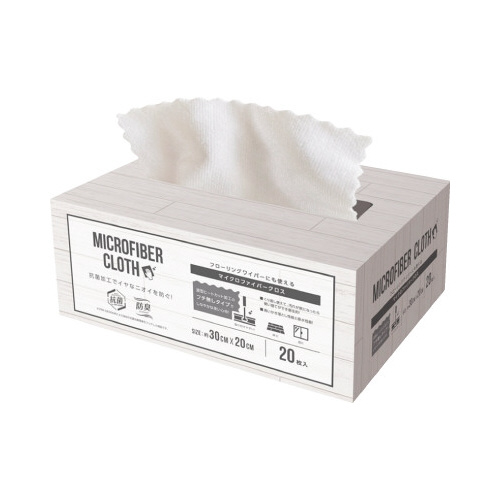 銀イオン抗菌加工による抗菌・防臭マイクロファイバークロス。フローリングワイパーシートサイズで拭き掃除に便利です。BOXタイプで収納しやすい。