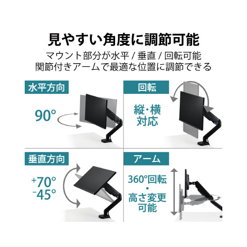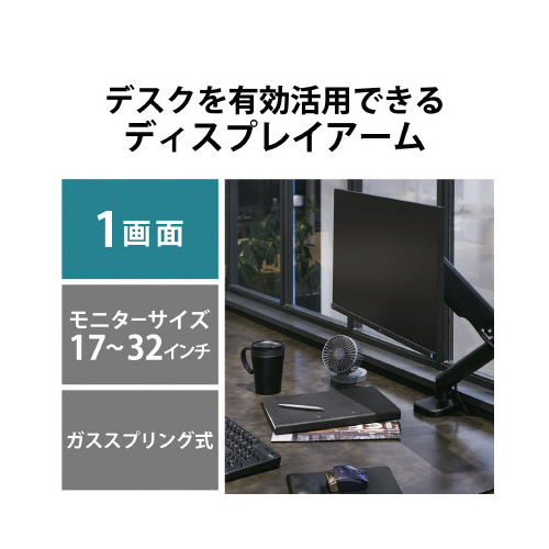 液晶ディスプレイの位置を自由に調整でき、デスクのスペースを有効活用!17-32インチサイズ対応ガススプリング式のシングルディスプレイアーム