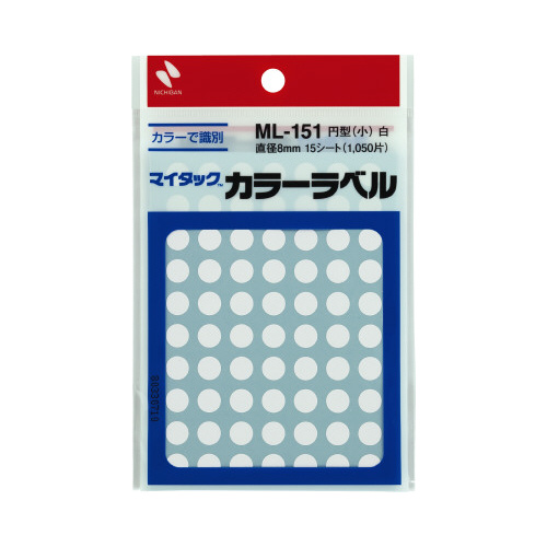 ニチバンのマイタックシリーズ。識別分類に便利な丸型カラーラベルです。再生可能な剥離紙を使用しています。