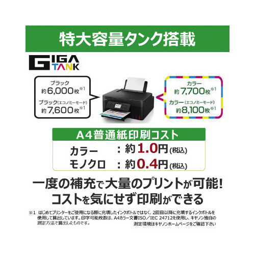 ●印刷コスト/A4普通紙(カラー):約1.0円、A4普通紙(モノクロ):約0.4円