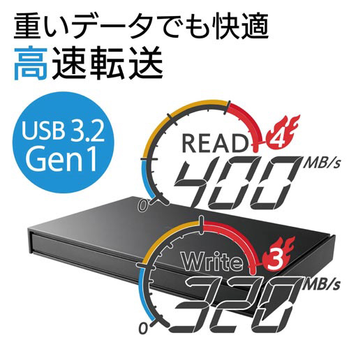 高速データ転送を実現。持ち運びに最適な衝撃・振動に強いUSB3.2(Gen1)対応データ復旧サービスLite付き外付けポータブルSSD。