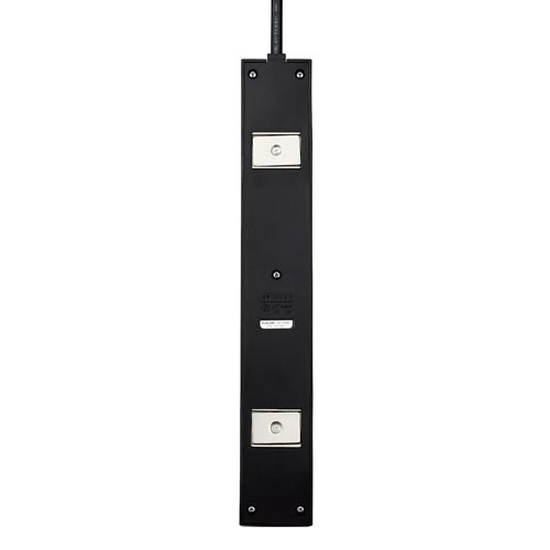 上面と側面にそれぞれ5個口ずつ、計10個口の2ピン式差込口を搭載したタップです。ON時に発光する一括スイッチで待機電力を抑え、底面の強力な磁石でスチール製の家具などにしっかりと固定して利用できます。