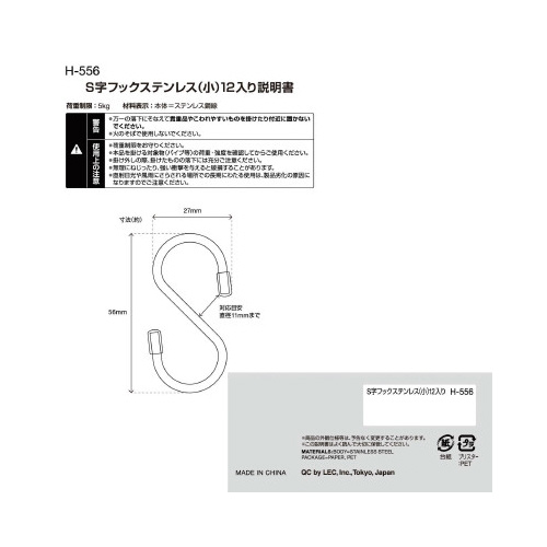 シンプルでおしゃれなSカン。両端の先端にビニールカバーがついているため物を傷つけません。丈夫で錆びにくいステンレス製。屋内での展示や収納だけでなく園芸用品の収納やベランダ収納といった屋外の使用にも。