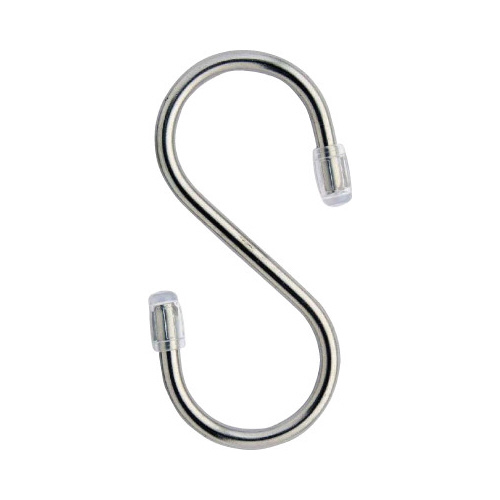 シンプルでおしゃれなSカン。両端の先端にビニールカバーがついているため物を傷つけません。丈夫で錆びにくいステンレス製。屋内での展示や収納だけでなく園芸用品の収納やベランダ収納といった屋外の使用にも。