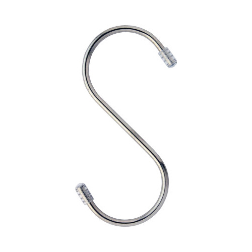 シンプルでおしゃれなSカン。両端の先端にビニールカバーがついているため物を傷つけません。丈夫で錆びにくいステンレス製。屋内での展示や収納だけでなく園芸用品の収納やベランダ収納といった屋外の使用にも。