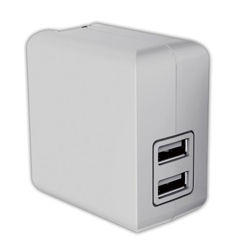急速充電に対応したUSBポートを2ポート備えたUSB充電器。1ポートあたり最大出力2.4A。2ポート合計4.8Aの高出力なので、タブレット2台同時の充電も可能です。
