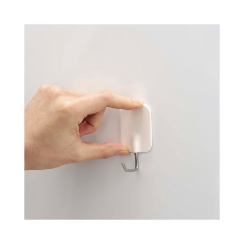 取り付け簡単。オシャレでシンプルなスタンダードの粘着フック。インテリアのデザインに馴染みます。フック部分が奥行があり厚みがあるものも掛けられます。キッチングッズ、掃除用具、リビング用品の整理整頓に。