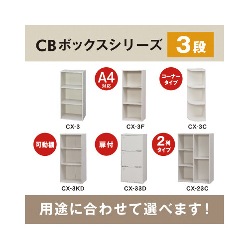 カラーバリエーション豊富な3段タイプのCBボックスです。カラーキュビックと連動したカラーなので、お好みのカラーでお部屋をトータルコーディネートできます。