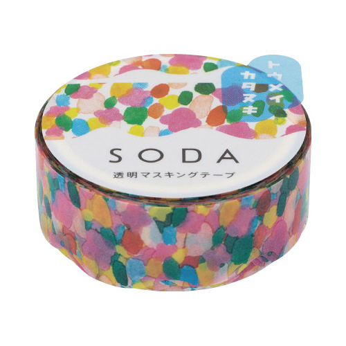 「SODA」は貼ってはがせる透明フィルム素材のマスキングテープです。透明度の高いフィルム素材を使用しているので下地の色を生かせます。貼ってはがすことができ、DIYや手帳づくりなどにも。
