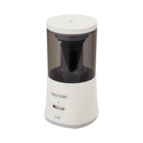 全自動えんぴつけずり。鉛筆を差すと自動的に引き込んで、削り終わると自動的に出てくる、オートマチック。充電式で電池不要。コードの取り外しが可能。置き場所自由、持ち運びも簡単にでき、削りカスが捨てやすい。