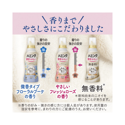 ふわもふ贅沢な肌ざわり・ハミングNo.1のやわらかさ。フレッシュローズの香り。