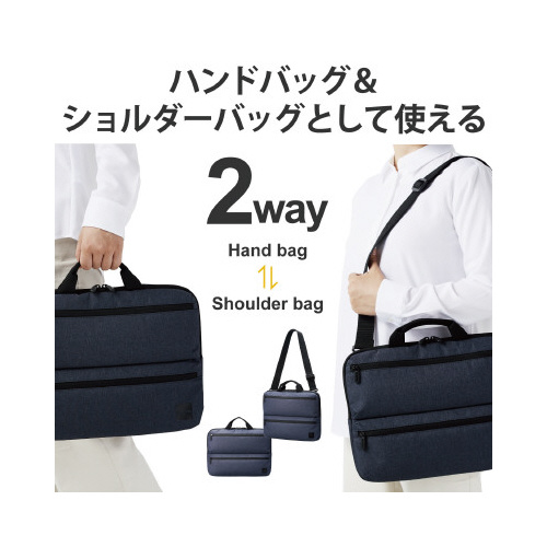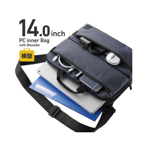 ノートパソコン、周辺機器、筆記用具、書類をまとめて持ち運べる!十分な収納力を備えた、14.0インチ対応のショルダーベルト付き横型インナーバッグ。
