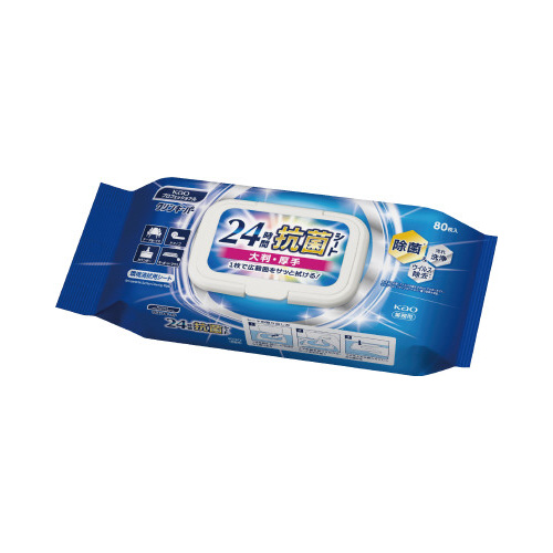 1枚で汚れ洗浄、除菌、ウイルス除去が可能、さらに24時間抗菌効果が持続する環境清掃用シート。