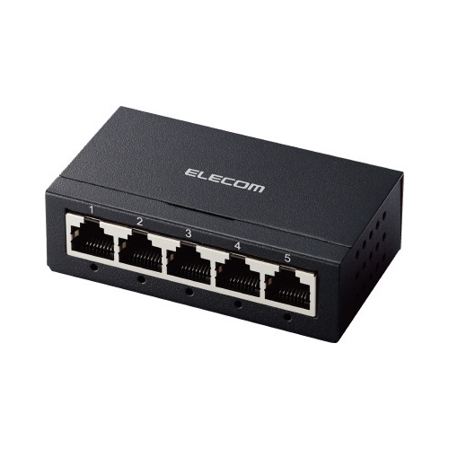 従来機種(※)より容積比で約60%コンパクト。1000BASE-T対応ACアダプター電源のメタル筐体5ポートスイッチングハブです。※従来機種:EHC-G05PA-B