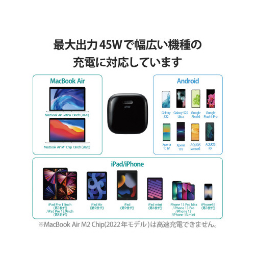 ●対応機種/USBType-C(TM)(USB-C(TM))ポートからUSBPowerDelivery3.0(45W)の規格内で充電可能な端末※1