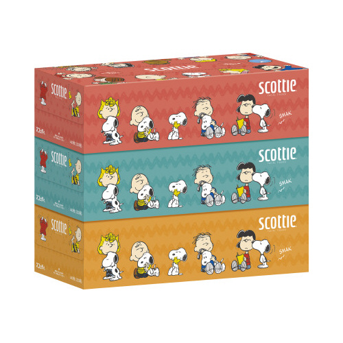 幸せな表情をしているスヌーピーと仲間たちのデザイン。お肌からワイパー使いまであらゆるシーンで使えるスタンダード品質。クレシア”くっつくん””かけるくん”使用可能。