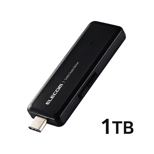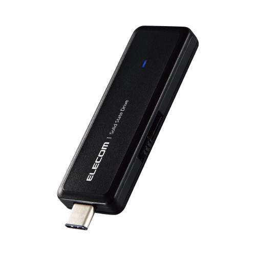 USBType-Cスライドコネクターを採用したUSB10Gbps(USB3.2(Gen2))外付けポータブルSSD。読み込み最大1000MB/s、書き込み最大980MB/sの高速データ転送。