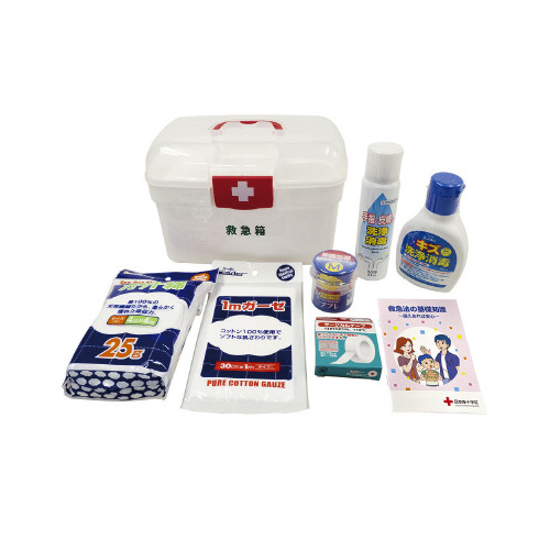 ご家庭の常備薬や衛生用品の管理に最適なプラスチック製の救急箱です。仕切りのあるトレー付なので、小さなものも整理収納できます。すぐに使える衛生材料セット付