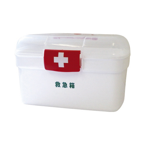 ご家庭の常備薬や衛生用品の管理に最適なプラスチック製の救急箱です。仕切りのあるトレー付なので、小さなものも整理収納できます。すぐに使える衛生材料セット付