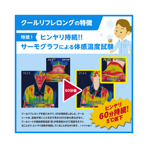 首かけできるタオル判のフェイス&ボディ用クールシート。清涼成分メントール配合で、使った後は爽快感が持続します。超大判サイズ15cm×60cm。持ち運びに便利なバケツタイプ本体。