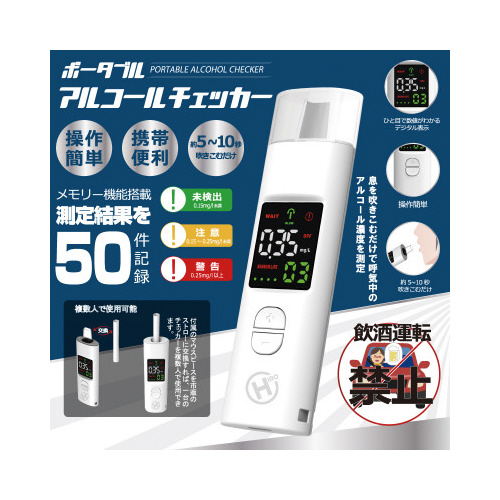 ※ポータブルアルコールチェッカーは、飲酒の有無を判断するための一つの判断材料であって、運転の可否を判断するものではありません。