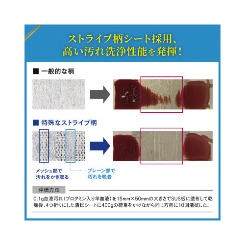 1枚で汚れ洗浄、除菌、ウイルス除去ができる環境清拭用シート。複数のウイルス・細菌で検証を実施。