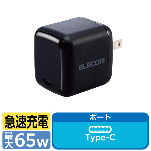 スマートフォンもノートパソコンもこれ1台で充電OK!USBType-Cポートを1ポート搭載し、幅広い機器に充電できる、PD対応の高出力65WUSBAC充電器。コンパクトでど持ち運びにも便利。