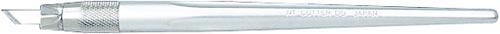 丈夫なアルミダイキャスト製デザインナイフ。適度な重みで安定した重量バランス。鉛筆感覚のΦ9mm。切り絵や消しゴムはんこに最適。2種類の刃(刃先45°、30°)各5枚入。