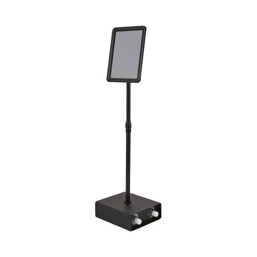 風に強いポスタースタンド。2Lのペットボトルを2本収納することで転倒防止になります。ポール部分の高さ調節、表示面の角度調節が可能です。