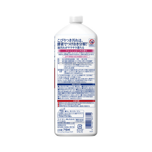 ●成分/界面活性剤(26% アルキルアミンオキシド、アルキルエーテル硫酸エステルナトリウム、ポリオキシエチレンアルキルエーテル)、安定化剤、酵素